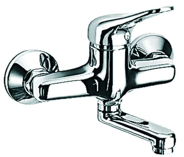 Mix 2-serien er en praktisk og funksjonell armaturserie, som leveres med mekansik justerbar temperatur og mengdebegrenser som standard. Vegg/Vask batteriet leveres med en 20cm svingbartut.